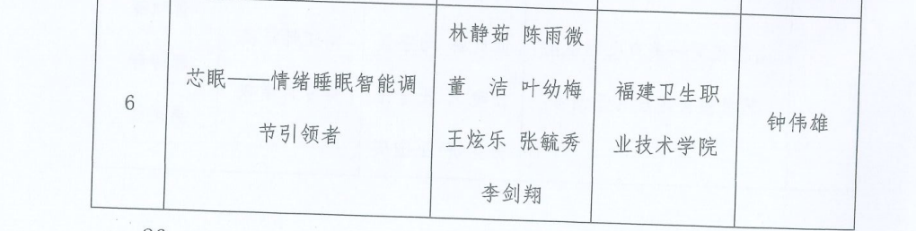 2024年8月14日,由共福建省婦女聯(lián)合會(huì)、福建省教育廳、福建省人力資源和社會(huì)保障廳、福建省科學(xué)技術(shù)廳聯(lián)合主辦的2024年海峽兩岸女大學(xué)生創(chuàng)新創(chuàng)業(yè)大賽決賽結(jié)果發(fā)布。本次大賽吸引了北京大學(xué)、廈門大學(xué)、福州大學(xué)等95所高校3916個(gè)項(xiàng)目參賽。我校報(bào)送的作品《芯眠--情緒睡眠智能調(diào)節(jié)引領(lǐng)者》獲得銅獎(jiǎng)。