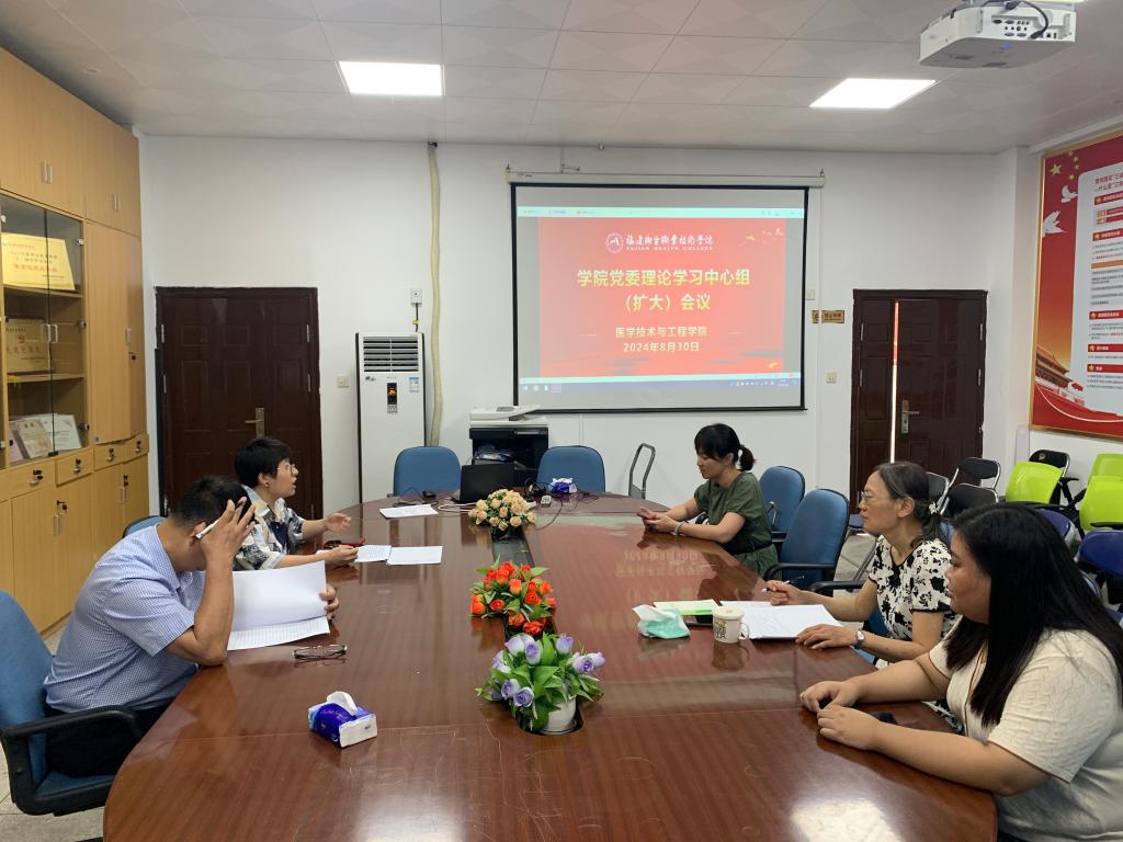 8月30日,醫(yī)學(xué)技術(shù)與工程學(xué)院召開黨委理論學(xué)習(xí)中心組會(huì)議,傳達(dá)習(xí)近平總書記就中央和國(guó)家機(jī)關(guān)學(xué)習(xí)貫徹黨的二十屆三中全會(huì)精神、推動(dòng)機(jī)關(guān)黨建高質(zhì)量發(fā)展作出的重要指示,跟進(jìn)學(xué)習(xí)習(xí)近平總書記在紀(jì)念鄧小平同志誕辰120周年座談會(huì)上、接見巴黎奧運(yùn)會(huì)中國(guó)體育代表團(tuán)時(shí)發(fā)表的重要講話精神,深入學(xué)習(xí)習(xí)近平生態(tài)文明思想和“3820”戰(zhàn)略工程思想精髓。學(xué)院黨委書記柯瓊鶯主持會(huì)議,學(xué)院院長(zhǎng)、黨委委員參加會(huì)議。