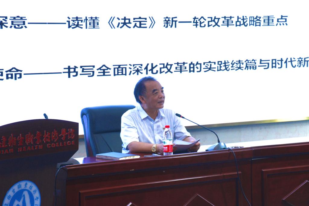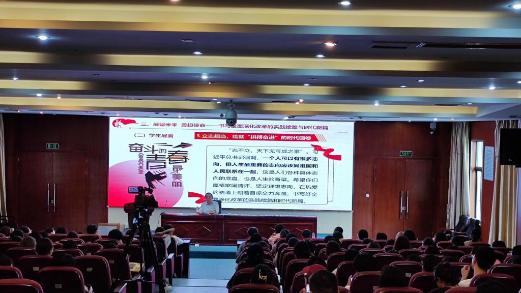 9月12日,學(xué)校紀(jì)委書記游鋒以《同心擘畫改革新藍(lán)圖  攜手奮進(jìn)強(qiáng)國新征程》為題,宣講黨的二十屆三中全會精神,本次宣講作為2024年秋季學(xué)期開學(xué)第一課,醫(yī)學(xué)技術(shù)與工程學(xué)院24眼視光301-302班學(xué)生、黨員教師共同參與學(xué)習(xí)。