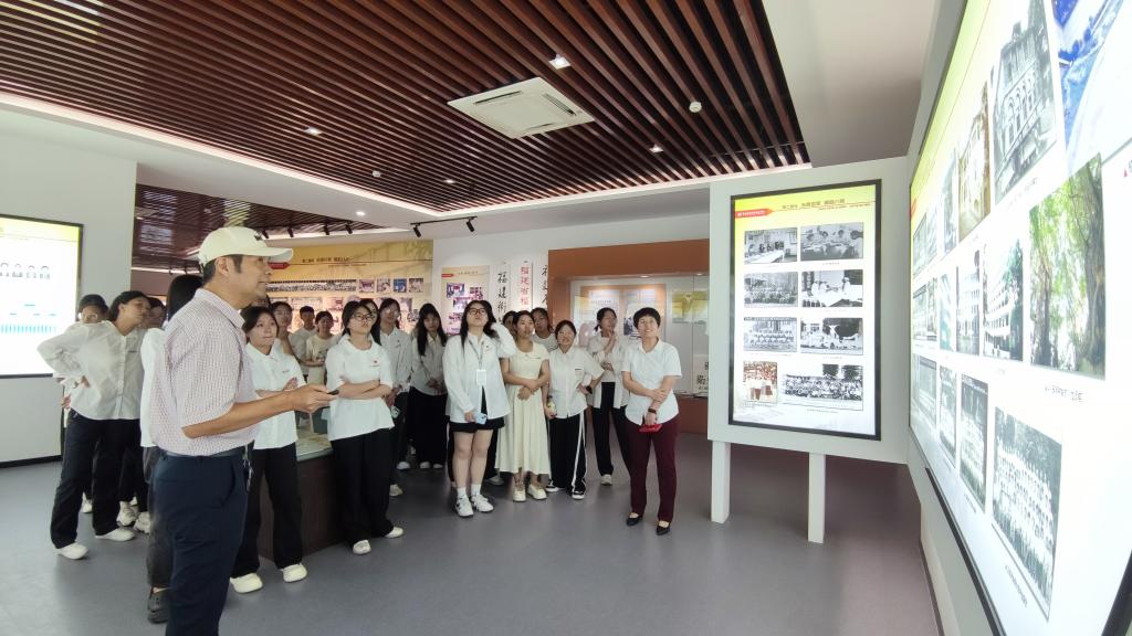 洪常青同志是學(xué)校1979級醫(yī)學(xué)大專班校友、工會原專職副主席。在這位老校友亦是老教師的帶領(lǐng)下,同學(xué)們參觀校史館“悠悠歲月,根深源遠(yuǎn)”、“滄桑巨變,崛起八閩”、“立德樹人,風(fēng)正帆懸”、“守正創(chuàng)新,建設(shè)示范”以及“不忘初心,行穩(wěn)致遠(yuǎn)”五大展區(qū)。通過一樁樁學(xué)院大事記、一幅幅生動的歷史照片,一件件鮮活的歷史實(shí)物,同學(xué)們?nèi)轿涣私鈱W(xué)校辦學(xué)的崢嶸歷程,感受一代代閩衛(wèi)人的接續(xù)奮斗,領(lǐng)略學(xué)校百余年校史的厚重底蘊(yùn)。