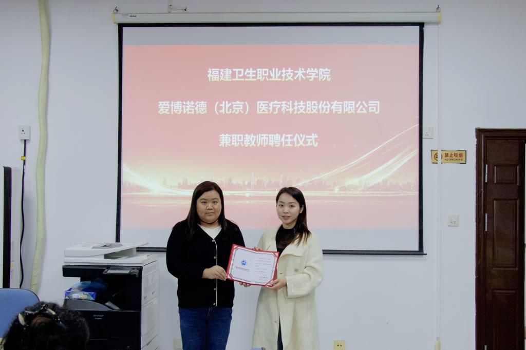 2024年11月22日下午,我校與愛博諾德(北京)醫(yī)療科技股份有限公司(簡稱:愛博醫(yī)療)開展合作共建儀式。我校醫(yī)學(xué)技術(shù)與工程學(xué)院黨委書記柯瓊鶯、院長翁繩和、眼視光技術(shù)專業(yè)教師及愛博醫(yī)療公司代表共同出席儀式,活動由醫(yī)學(xué)技術(shù)與工程學(xué)院副院長周微琳主持。