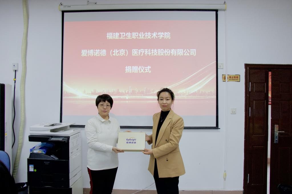 校企雙方舉行了共建“角膜接觸鏡實訓(xùn)室”揭牌儀式、捐贈儀式及兼職教師聘任儀式。愛博醫(yī)療現(xiàn)場向我校捐贈普諾瞳?角膜塑形鏡鏡片、硬性接觸鏡護理產(chǎn)品等教學(xué)用具用品。后續(xù),愛博醫(yī)療還將深度參與學(xué)校專業(yè)建設(shè),組織專項培訓(xùn)師資到校授課,并為我校教職工提供培訓(xùn)進修機會。