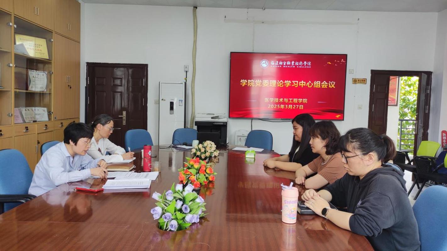 3月27日,醫(yī)學技術(shù)與工程學院召開黨委理論學習中心組會議,主要深入學習習近平總書記重要講話重要文章,傳達2025年全國兩會等重要會議精神,研究部署貫徹落實工作。