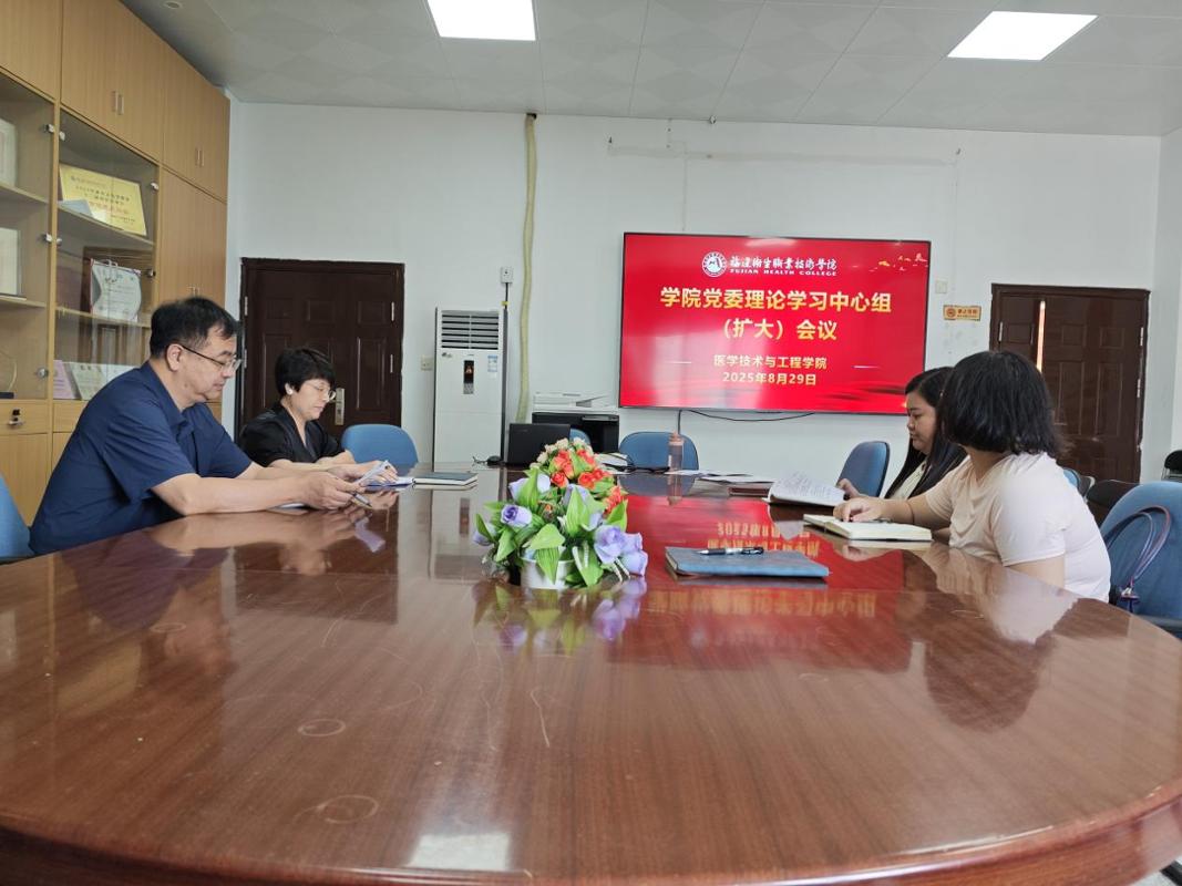 8月29日,醫(yī)學(xué)技術(shù)與工程學(xué)院舉行黨委理論學(xué)習(xí)中心組(擴(kuò)大)會(huì)議,主要深入學(xué)習(xí)習(xí)近平總書記致全國青聯(lián)十四屆全委會(huì)全國學(xué)聯(lián)二十八大重要賀信精神、習(xí)近平總書記重要文章《堅(jiān)定不移推進(jìn)高水平對(duì)外開放》、習(xí)近平總書記關(guān)于防治統(tǒng)計(jì)造假重要指示批示精神,學(xué)習(xí)《整治形式主義為基層減負(fù)若干規(guī)定》,同時(shí)研讀雙高建設(shè)相關(guān)文件等。院長翁繩和、黨委委員參加學(xué)習(xí)。