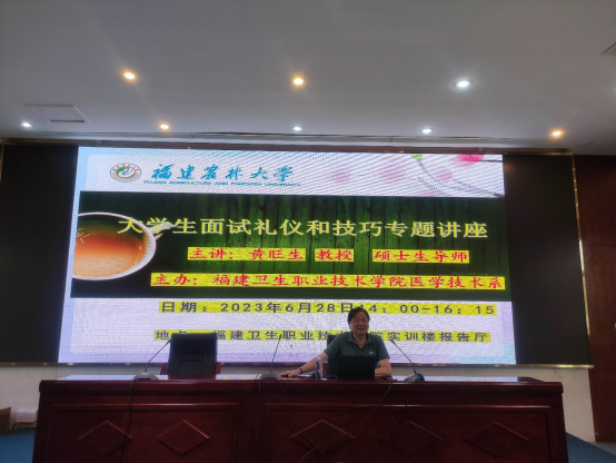 6月28日,福建農林大學黃旺生教授來校為醫(yī)學技術系師生講授就業(yè)指導講座《大學生面試禮儀與技巧》。醫(yī)學技術系黨總支書記柯瓊鶯、輔導員代表及醫(yī)學技術系2023屆畢業(yè)生共同參加學習。