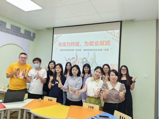 為了更好地緩解畢業(yè)生就業(yè)壓力,發(fā)揮學生黨支部在服務學生畢業(yè)就業(yè)過程中的幫扶作用,2023年6月28日上午,醫(yī)學技術系學生第一黨支部特邀健康管理系黨總支第一支部夏雪梅老師(心理健康教研室)在學校心理健康教育中心開展了一場名為“與壓力對話,為就業(yè)賦能”的團體心理輔導活動。