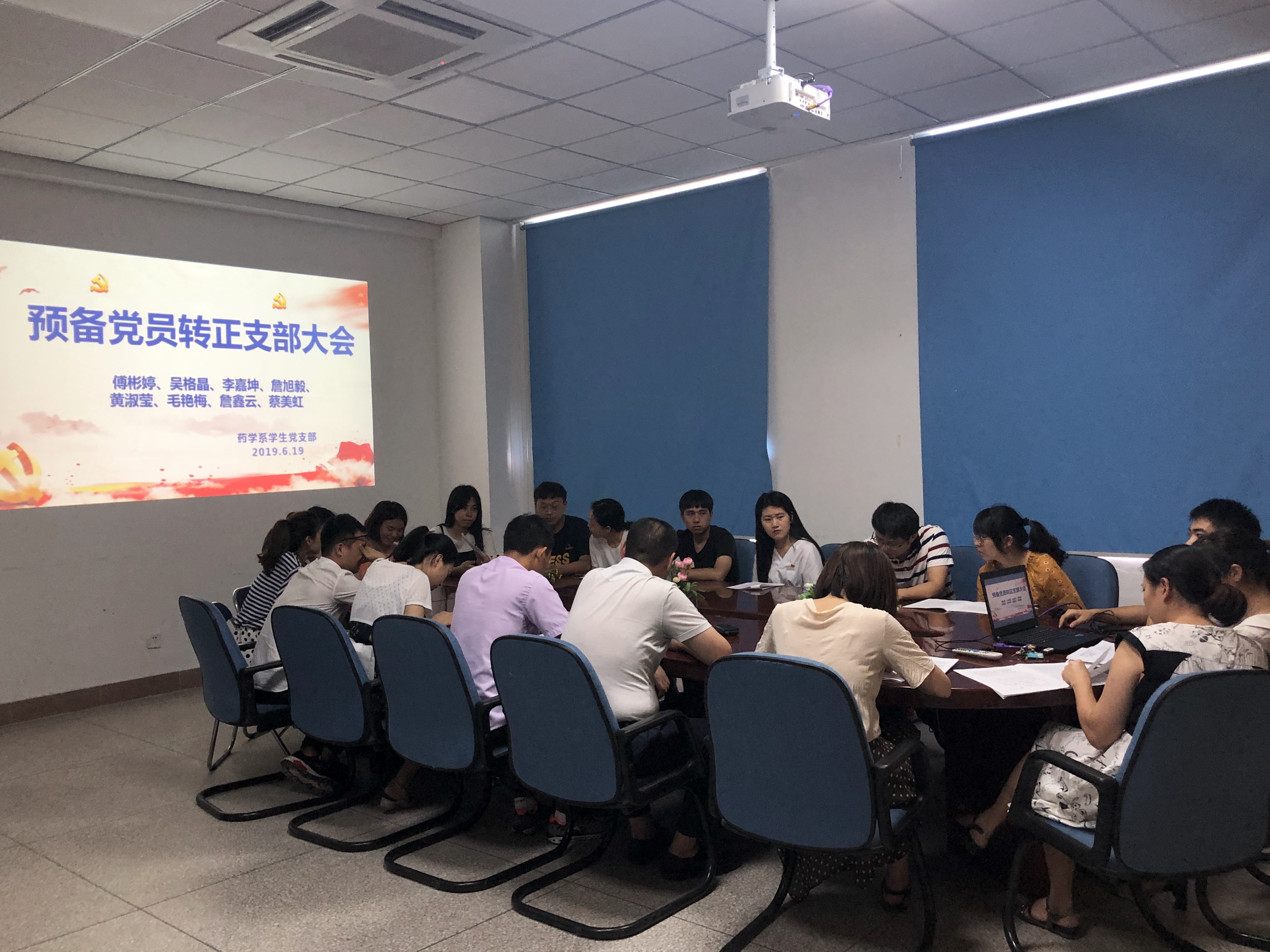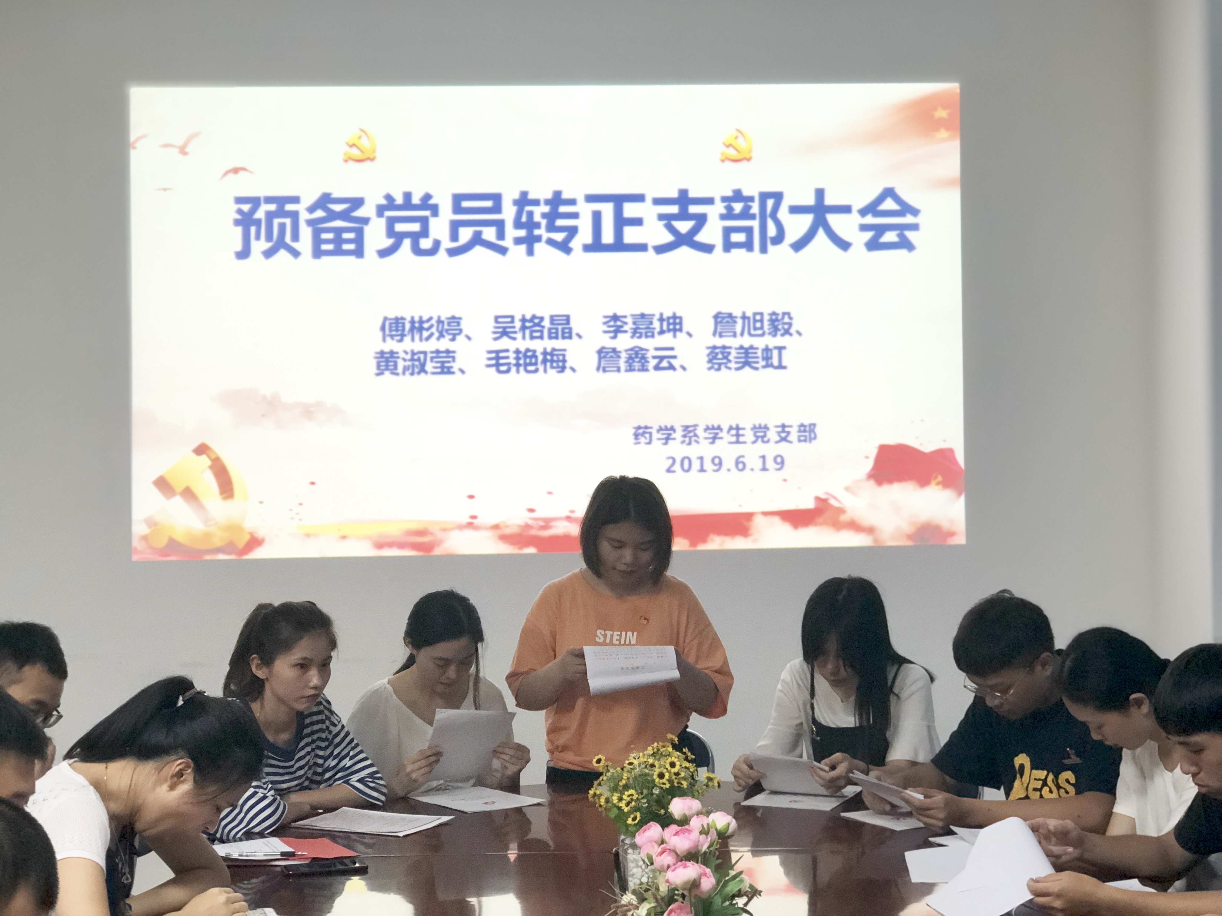 2019年6月19日上午,藥學系學生黨支部在藥學系207會議室召開預備黨員轉(zhuǎn)正大會。會議由支部書記蘇素嬌同志主持,支部10名正式黨員同志及8名學生預備黨員參會。