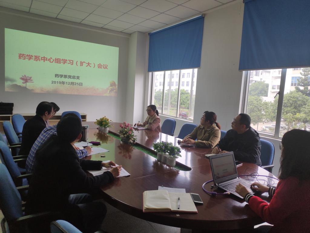 2019年12月25日,藥學系黨總支在系部會議室召開中心組學習(擴大)會議,會議由藥學系黨總支副書記賴文金主持。