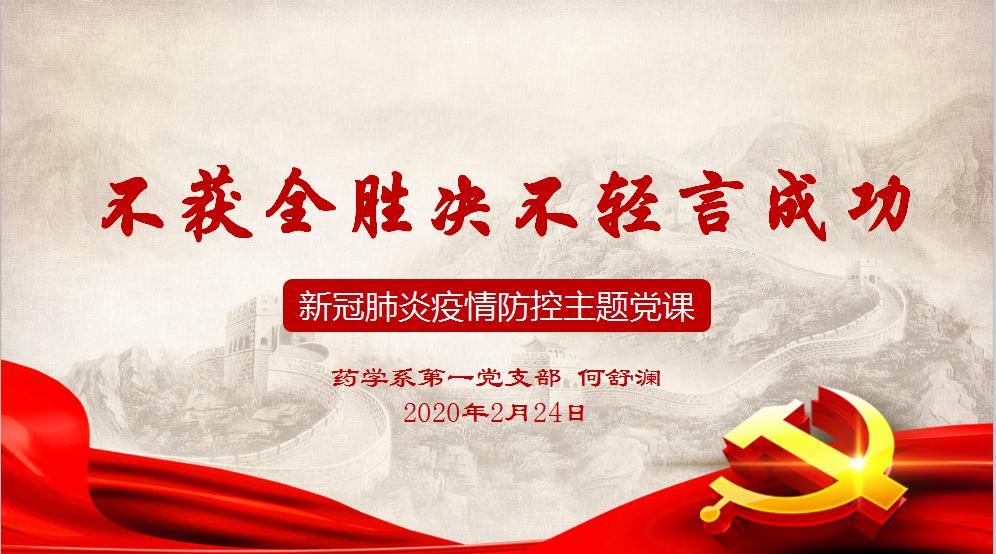 “同志們,上課啦?!?span style="font-family: Calibri;">2月24日,藥學(xué)系第一黨支部全體黨員按時來到騰訊會議集合,一場題為“不獲全勝、絕不輕言成功”的線上黨課正在進行。