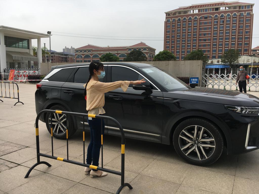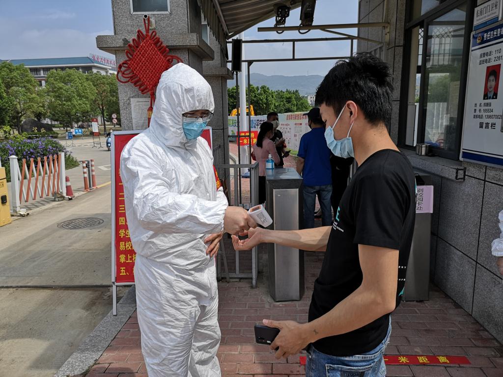 鄧元榮老師對入校學生進行體溫監(jiān)測