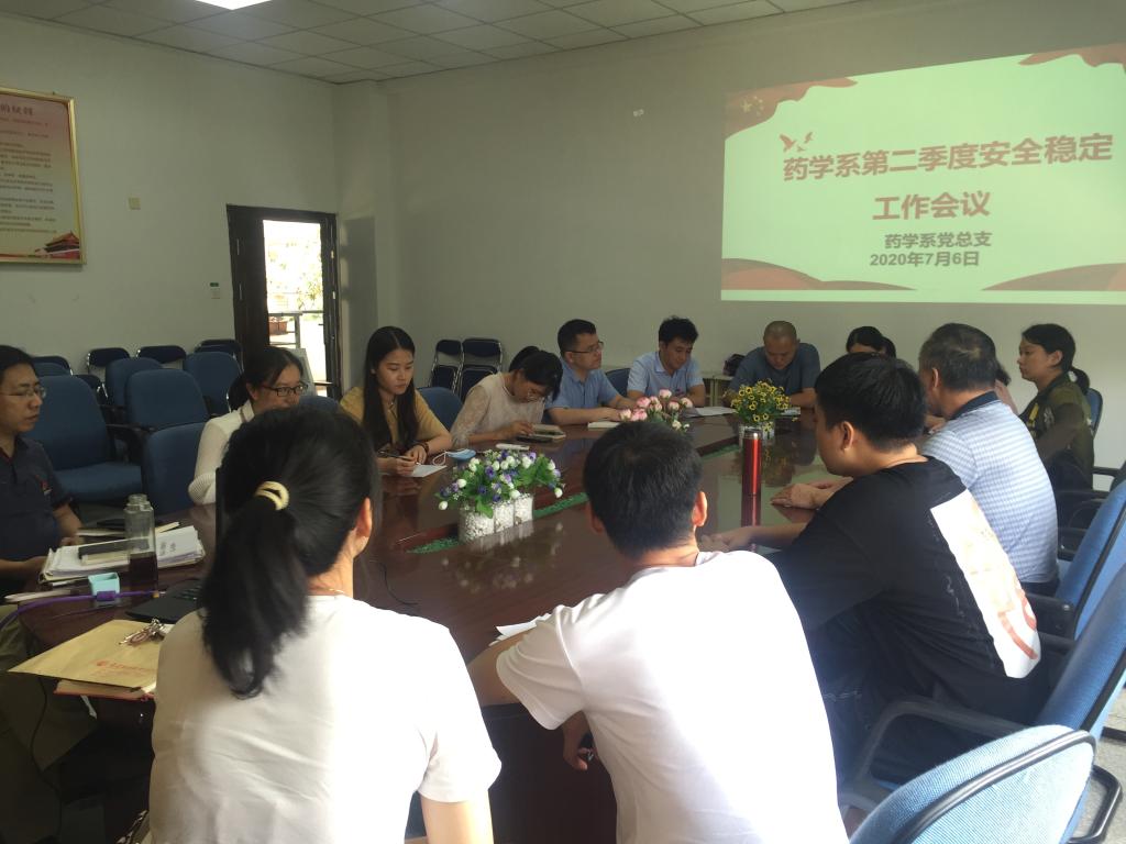 2020年7月6日,藥學(xué)系黨總支在系部會(huì)議室召開2020年第二季度安全穩(wěn)定工作會(huì)議,藥學(xué)系黨總支書記鄭力宏、副主任(主持工作)肖健、黨總支副書記賴文金、總支委員、各支部書記、實(shí)訓(xùn)中心主任參加會(huì)議,會(huì)議由黨總支書記鄭力宏主持。
