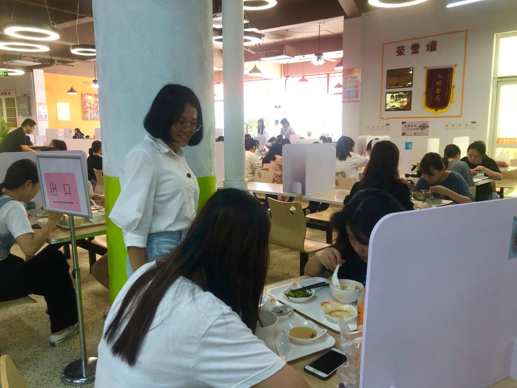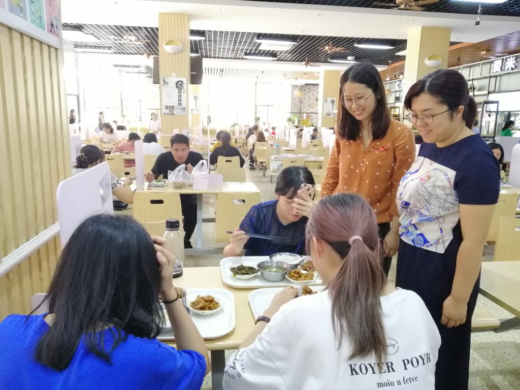 在支部書記鄧元榮同志的倡議下,支部黨員以實際行動響應(yīng)號召,午餐期間,分組前往學(xué)院各個食堂開展文明督導(dǎo)。葉雅沁、丁藝蘭等同志來到第一餐廳為光盤的同學(xué)點贊,對浪費的行為進(jìn)行督促,引導(dǎo)學(xué)生厲行節(jié)約,杜絕舌尖上的浪費;李泳寧、朱宏陽與唐小巒同志前往明湖餐廳,倡導(dǎo)同學(xué)們“打飯打菜要適量,盤中飯菜要吃光,從我做起?!?/span>
