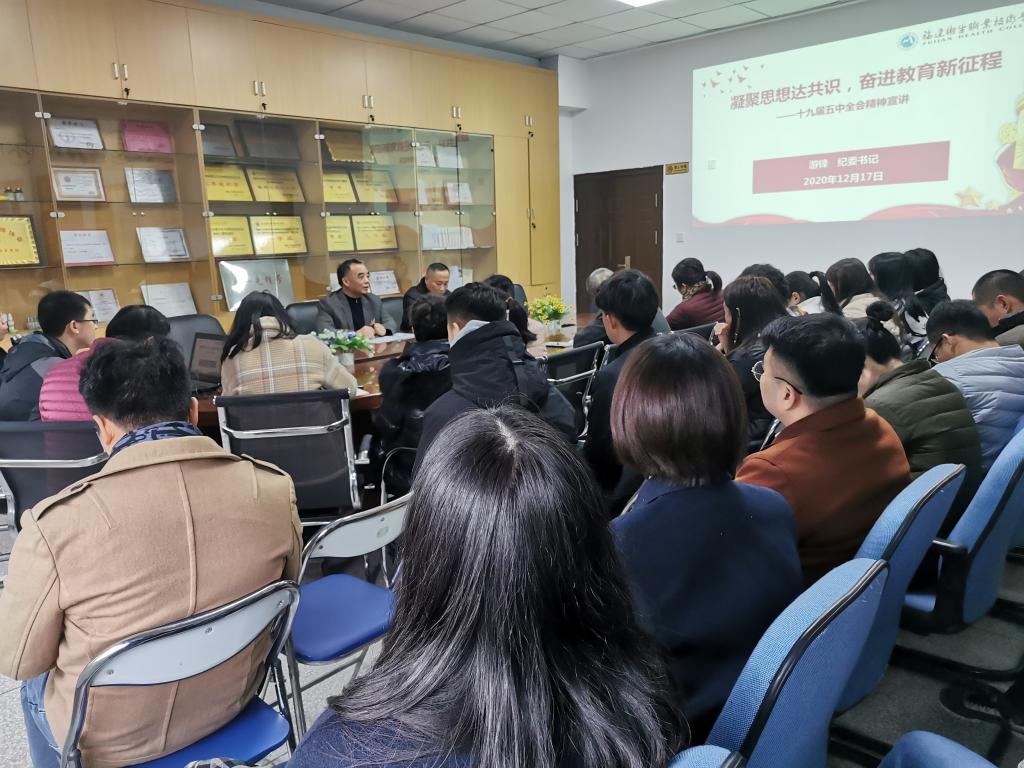 2020年12月17日,校紀(jì)委書(shū)記游鋒蒞臨藥學(xué)院,以“凝聚思想達(dá)共識(shí),奮進(jìn)教育新征程”為題,在藥學(xué)院會(huì)議室講授十九屆五中全會(huì)專(zhuān)題黨課。藥學(xué)院黨總支書(shū)記鄭力宏主持黨課,藥學(xué)院全體黨員、20藥學(xué)301班學(xué)生代表到場(chǎng)聆聽(tīng)。
