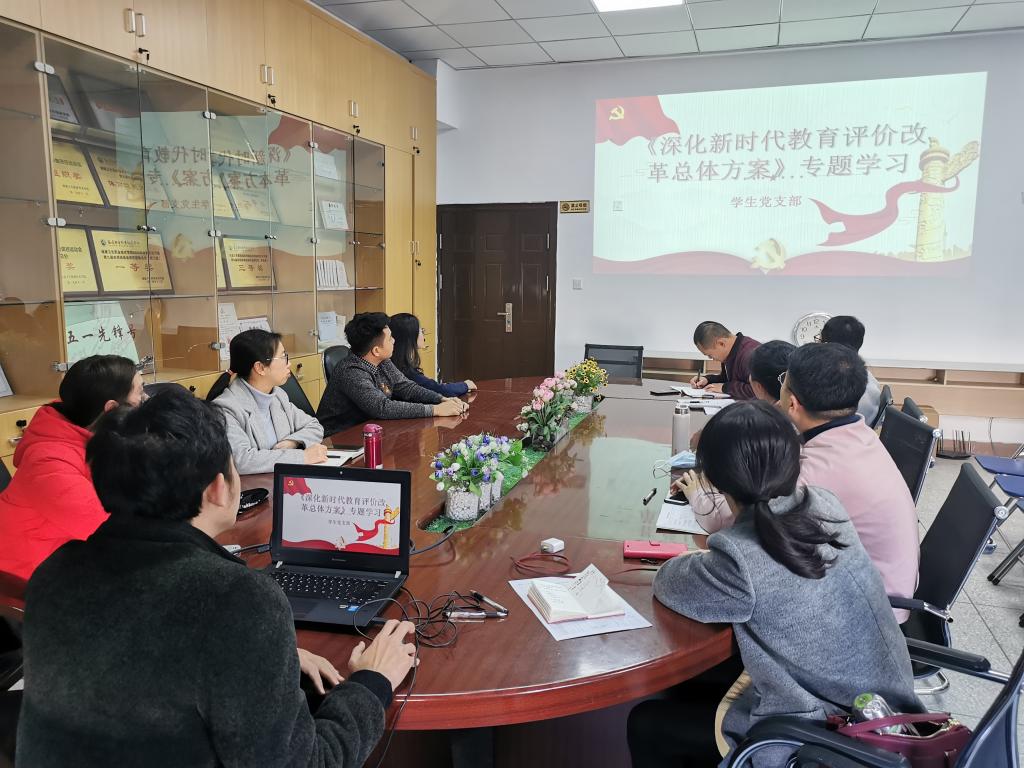 12月30日,藥學(xué)院學(xué)生黨支部召開黨員大會,專題學(xué)習(xí)《深化新時(shí)代教育評價(jià)改革總體方案》,支部陳翰書記主持會議,全體教師黨員出席。