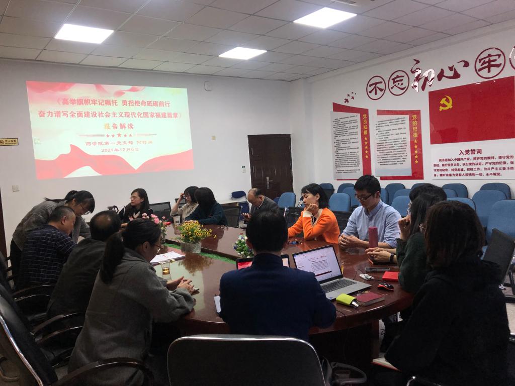 2021年12月16日,藥學(xué)院第一黨支部書記何舒瀾在藥學(xué)院會議室為支部黨員開展福建省第十一次黨代會精神專題黨課。