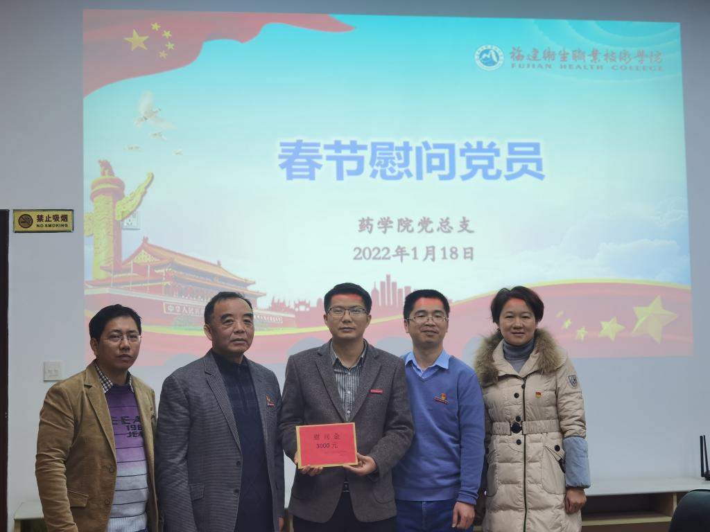 為貫徹落實(shí)《中共福建省委教育工委辦公室關(guān)于在元旦春節(jié)期間開展走訪慰問生活困難黨員、老黨員、老干部活動(dòng)的通知》(閩委教辦組〔2021〕4號(hào))要求,使廣大黨員、干部和群眾深切感受到以習(xí)近平同志為核心的黨中央的關(guān)懷和溫暖,2022年1月18日藥學(xué)院黨總支在會(huì)議室組織開展春節(jié)慰問黨員活動(dòng)。校紀(jì)委書記游鋒、藥學(xué)院領(lǐng)導(dǎo)班子蒞臨現(xiàn)場(chǎng)。