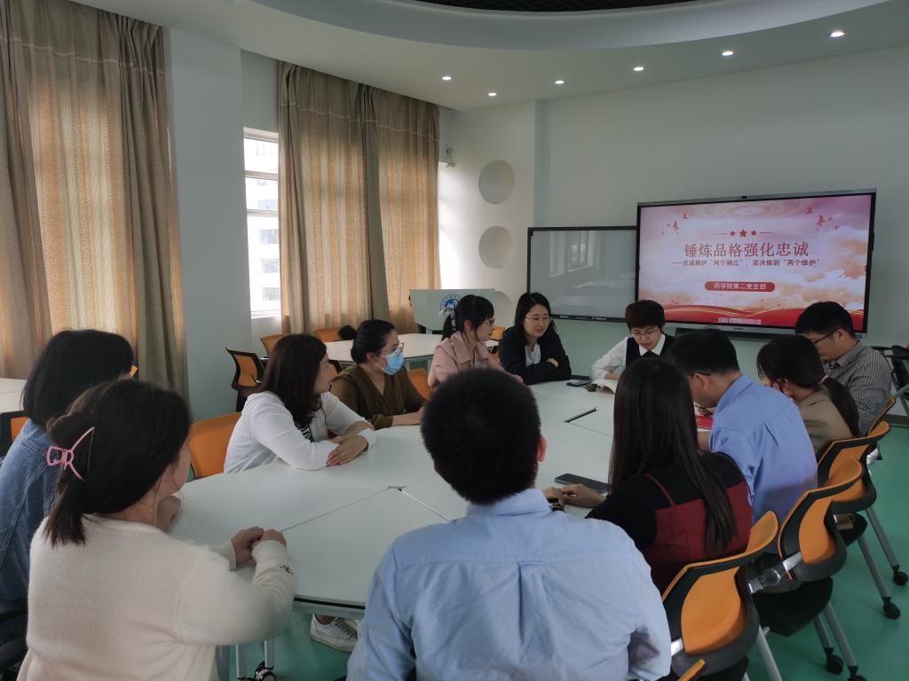 為深入學習領會習近平新時代中國特色社會主義思想,忠誠擁護“兩個確立”,堅決做到“兩個維護”,藥學院第二黨支部于2023年5月11日開展“錘煉品格強化忠誠”專題學習。本次專題學習由支部書記劉丹丹主持。