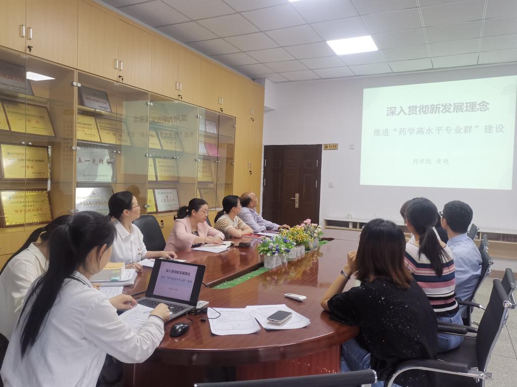 藥學(xué)院副院長(zhǎng)黃艷以《深入貫徹新發(fā)展理念——推進(jìn)“藥學(xué)高水平專業(yè)群”建設(shè)》為題,重點(diǎn)從深入貫徹新發(fā)展理念的內(nèi)涵,推進(jìn)“藥學(xué)高水平專業(yè)群”建設(shè)的思考這兩個(gè)方面進(jìn)行了深入講解。同時(shí),客觀分析了藥學(xué)院發(fā)展現(xiàn)狀,并緊密聯(lián)系工作實(shí)際,就如何推進(jìn)“藥學(xué)高水平專業(yè)群”建設(shè)提出具體要求。