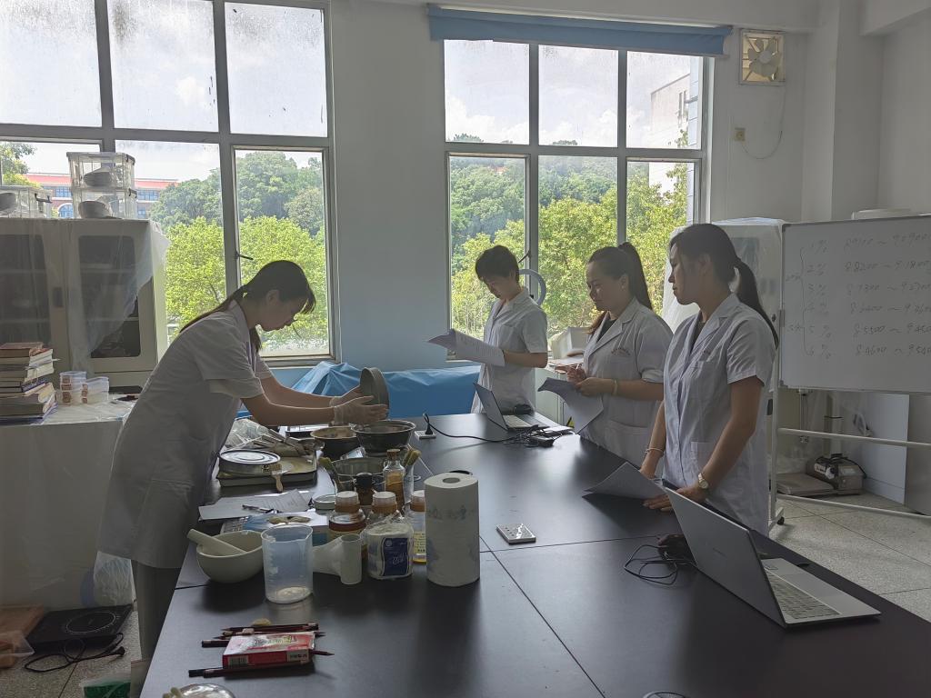 支部黨員中藥教研室老師們對技能競賽選手糾細節(jié)