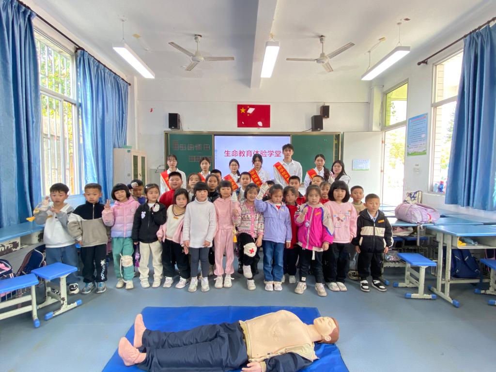 活動(dòng)開(kāi)始,黨員們乘車(chē)前往連江縣潘渡鎮(zhèn)中心小學(xué)。學(xué)生預(yù)備黨員發(fā)揚(yáng)閩衛(wèi)醫(yī)學(xué)生特長(zhǎng),組織開(kāi)展生命教育體驗(yàn)學(xué)堂活動(dòng),生動(dòng)形象地給小朋友們講解了心肺復(fù)蘇、緊急救護(hù)的正確步驟及如何運(yùn)用三角巾及繃帶包扎傷口,并“手把手”指導(dǎo)同學(xué)們實(shí)操演練,讓小朋友們更直觀地領(lǐng)會(huì)、掌握急救知識(shí)技能及要領(lǐng)。