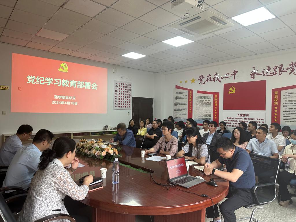 4月18日,藥學(xué)院黨總支組織開展黨紀(jì)學(xué)習(xí)教育部署會(huì),傳達(dá)學(xué)習(xí)習(xí)近平總書記關(guān)于黨紀(jì)學(xué)習(xí)教育的重要講話和重要指示精神以及上級(jí)會(huì)議、文件精神,對(duì)學(xué)院黨紀(jì)學(xué)習(xí)教育開展工作部署。藥學(xué)院全體黨員到場(chǎng)參會(huì),會(huì)議由黨總支書記林穎峰主持。