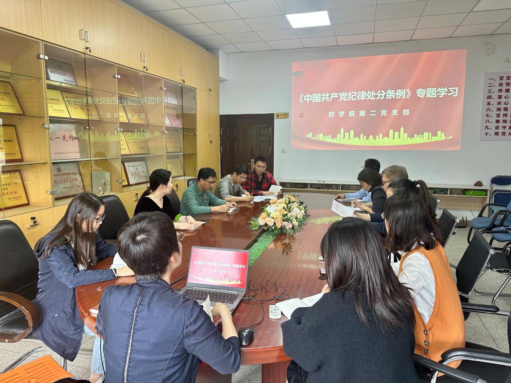 為深入學(xué)習(xí)貫徹習(xí)近平總書記關(guān)于黨紀(jì)學(xué)習(xí)教育的重要講話和重要指示精神,深刻認(rèn)識開展黨紀(jì)學(xué)習(xí)教育的重大意義,準(zhǔn)確把握目標(biāo)要求,4月25日下午,藥學(xué)院第二黨支部在藥學(xué)院會議室開展《中國共產(chǎn)黨紀(jì)律處分條例》(以下簡稱《條例》)的專題學(xué)習(xí)會。本次會議由黨支部書記劉丹丹主持,全體教師黨員積極參與。
