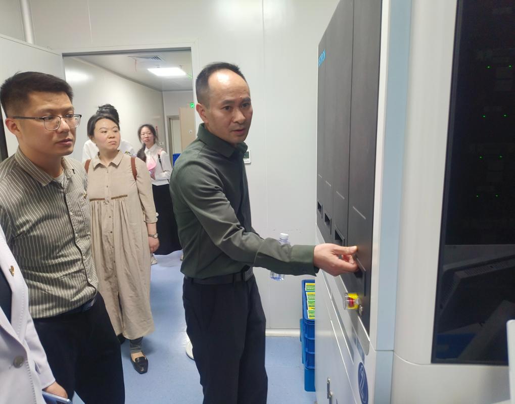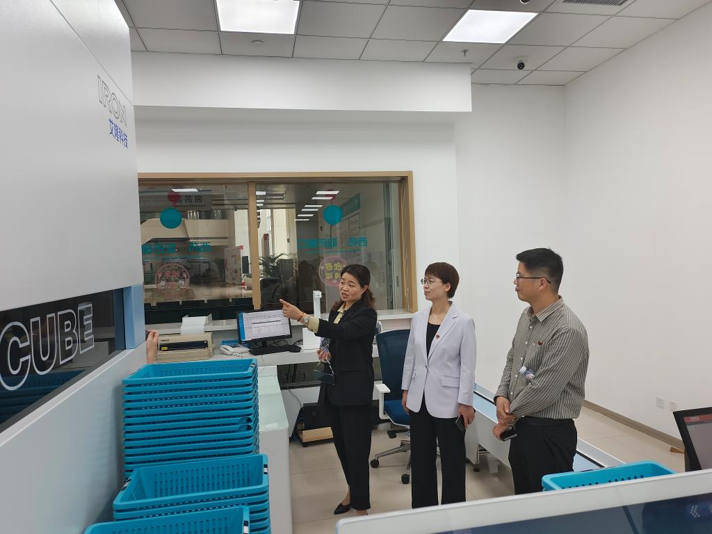 座談會后,藥學(xué)院一行在俞曉玲書記的引導(dǎo)下,參觀了智慧藥房、臨床藥學(xué)、精準(zhǔn)藥學(xué)平臺等關(guān)鍵功能區(qū)。在智慧藥房參觀環(huán)節(jié),俞曉玲書記詳細(xì)介紹了“庫發(fā)一體”智慧藥房,實(shí)現(xiàn)藥品從入庫到分發(fā)全流程自動化、智慧化,展示了智能化藥房的高效運(yùn)作,讓教師們直觀感受到數(shù)字化轉(zhuǎn)型對藥學(xué)服務(wù)的革新作用。劉丹丹書記表示,將結(jié)合調(diào)研成果優(yōu)化教學(xué)內(nèi)容,培養(yǎng)適應(yīng)智慧醫(yī)療需求的復(fù)合型人才。