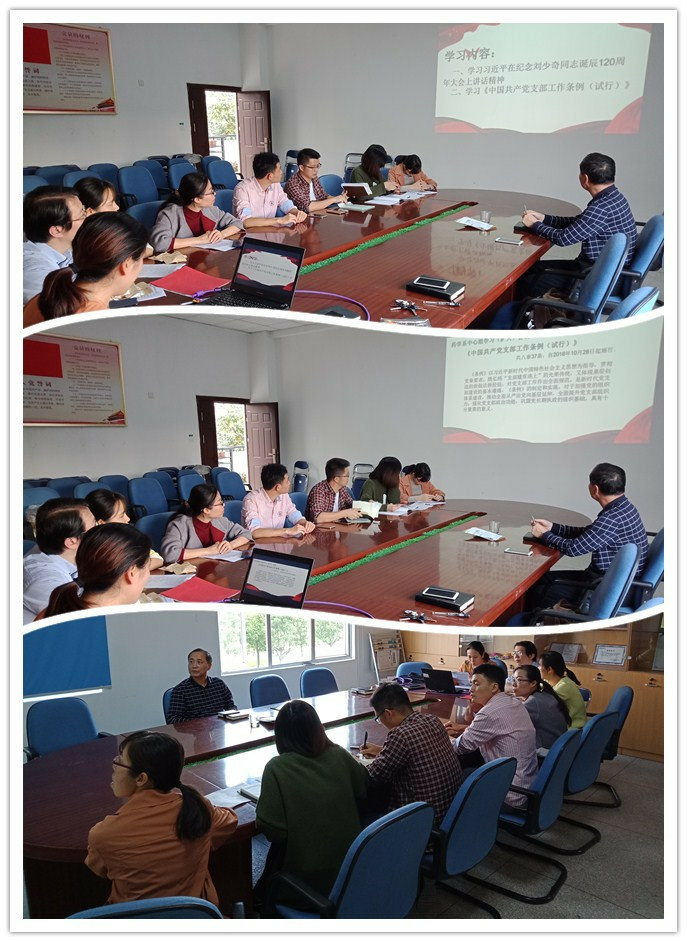 12月6日,藥學(xué)系黨總支中心組學(xué)習(xí)(擴(kuò)大)會(huì)議在系會(huì)議室召開(kāi)。藥學(xué)系領(lǐng)導(dǎo)班子成員、總支委員、支部書記等參加學(xué)習(xí)會(huì),會(huì)議由總支副書記陳潔主持。 會(huì)議集中學(xué)習(xí)《中國(guó)共產(chǎn)黨支部工作條例(試行)》及習(xí)近平總書記在紀(jì)念劉少奇同志誕辰120周年大會(huì)上的重要講話精神。 鄭力宏書記指出黨支部是黨的基礎(chǔ)組織,是黨的工作和戰(zhàn)斗力的基礎(chǔ),擔(dān)負(fù)直接教育黨員、管理黨員、監(jiān)督黨員和組織群眾、宣傳群眾、凝聚群眾、服務(wù)群眾的職責(zé),我們要以習(xí)近平新時(shí)代中國(guó)特色社會(huì)主義思想為指導(dǎo),遵循支部建設(shè)標(biāo)準(zhǔn)化、規(guī)范化要求,規(guī)范支部各項(xiàng)工作,帶領(lǐng)全體黨員牢固樹(shù)立政治意識(shí)、大局意識(shí)、核心意識(shí)、看齊意識(shí),不斷提高藥學(xué)系三個(gè)黨支部建設(shè)質(zhì)量。