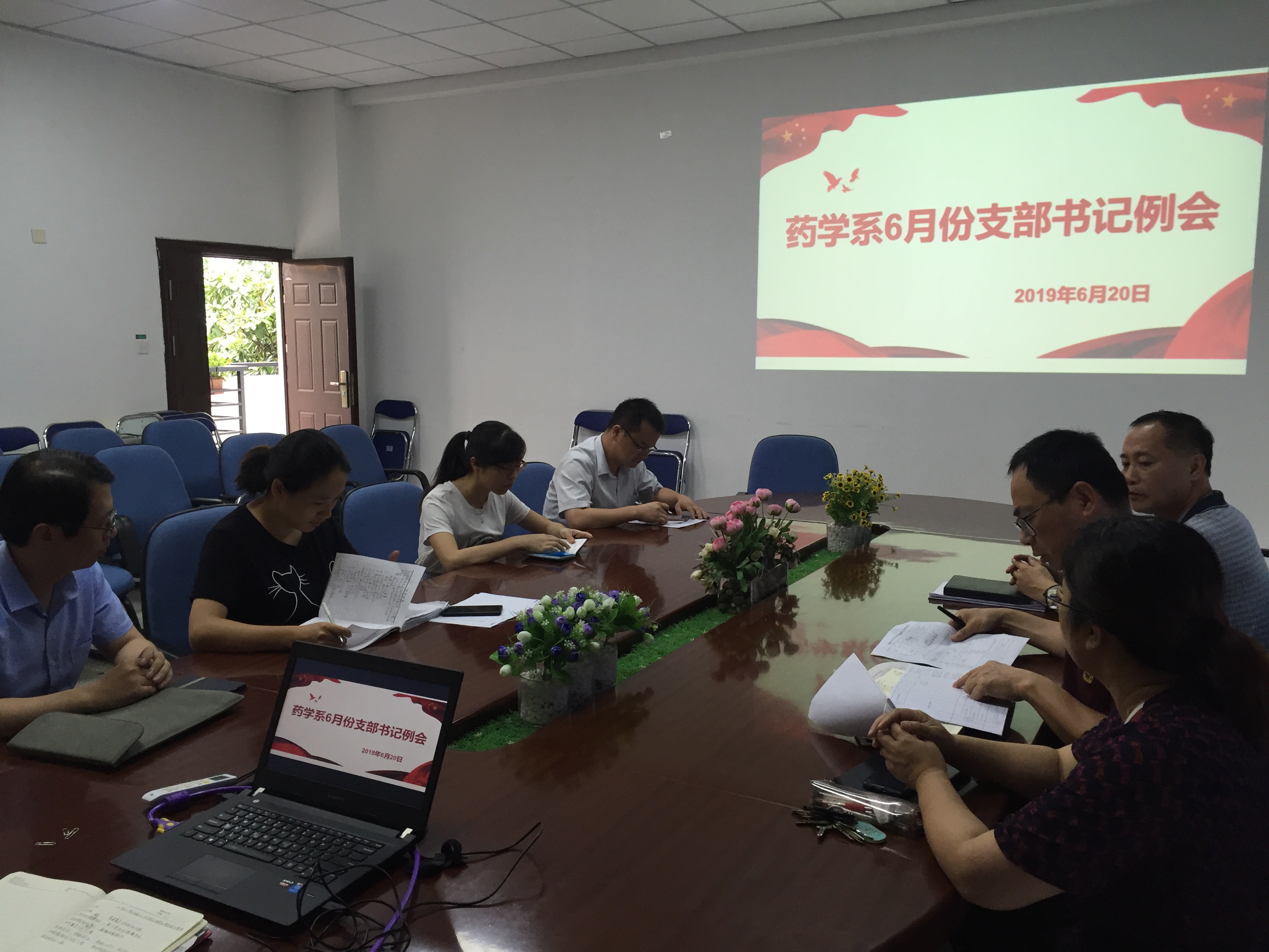 2019年6月20日,藥學(xué)系在會議室召開6月份支部書記例會,會議由藥學(xué)系黨總支書記鄭力宏同志主持。