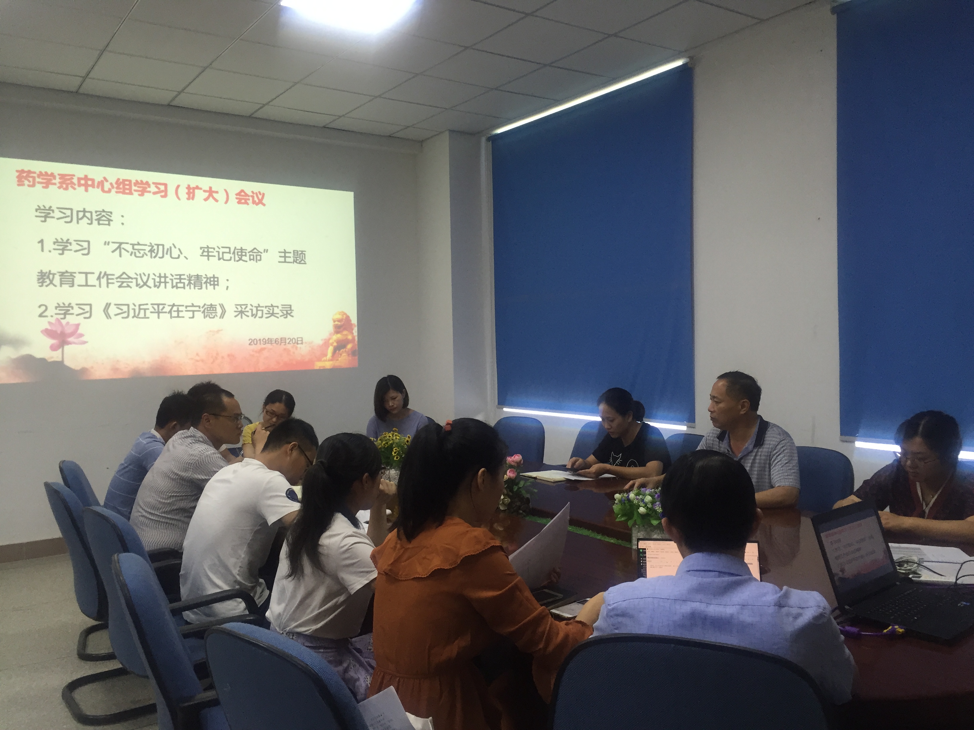 2019年6月20日藥學(xué)系中心組(擴大)于會議室學(xué)習(xí)習(xí)近平總書記在“不忘初心、牢記使命”主題教育工作會議上的重要講話精神及《習(xí)近平在寧德》采訪實錄。會議由藥學(xué)系黨總支鄭力宏書記主持,系黨總支委員、各支部書記、全體輔導(dǎo)員參加本次學(xué)習(xí)。