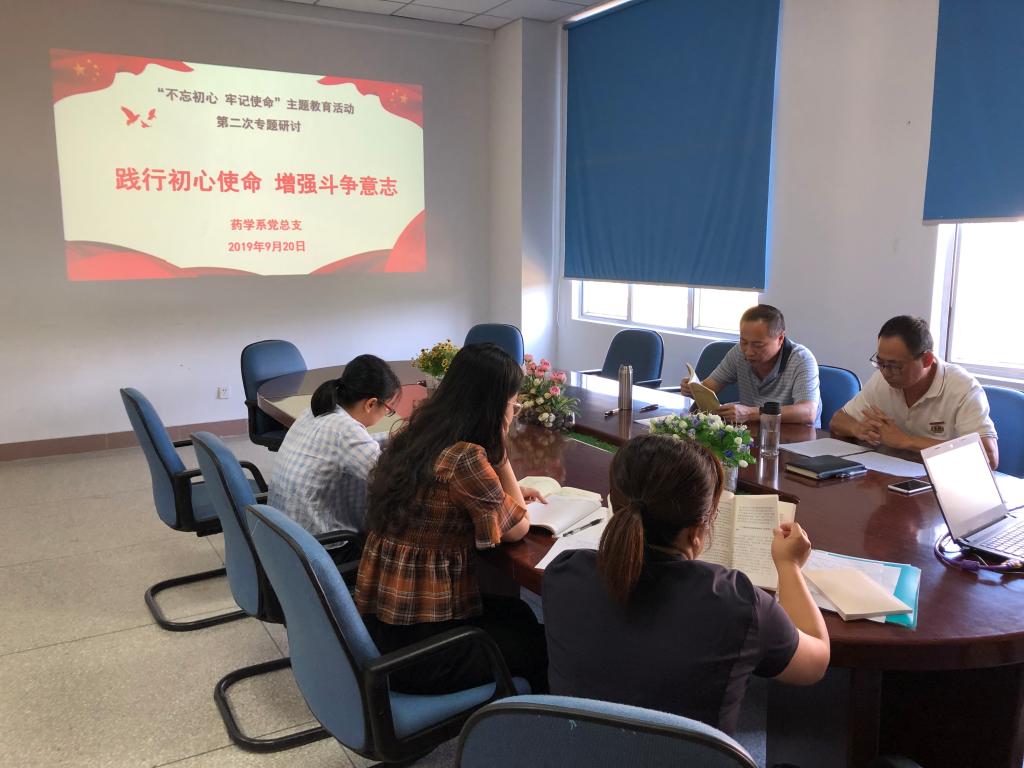 9月20日,藥學(xué)系黨總支在系部會議室開展主題為“踐行初心使命,增強(qiáng)斗爭意志”專題學(xué)習(xí)研討交流會。藥學(xué)系黨總支書記鄭力宏主持會議,系副主任(主持工作)肖健、黨總支副書記賴文金、副主任潘雪豐參加了本次研討交流會。