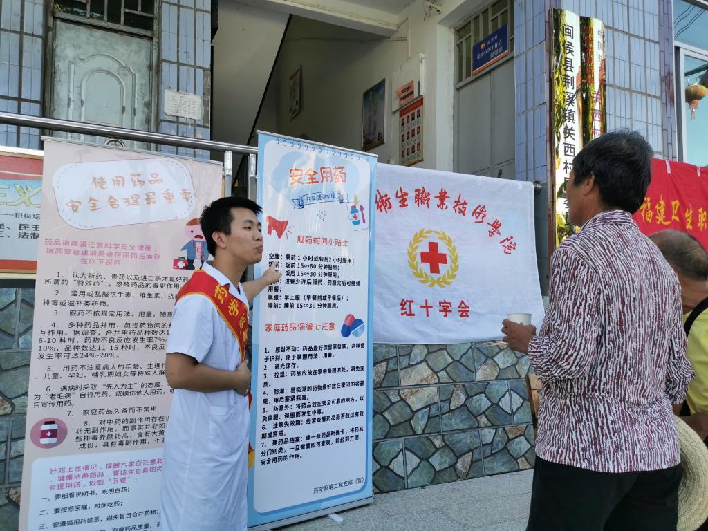 為慶祝中華人民共和國成立70周年,推進“不忘初心、牢記使命”主題教育,服務百姓、提高居民健康素養(yǎng),傳播健康理念,9月19日,藥學系學生黨支部、團總支攜手院紅十字會赴閩侯縣關西村展開特別主題黨日活動——“我與祖國共奮進·喜迎中華人民共和國成立70周年”。