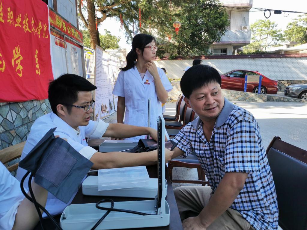 迎著炎炎烈日,支部黨員和志愿者們早早地到達關西村布置現(xiàn)場。此次活動主要為當?shù)卮迕駵y量血壓、開展急救知識培訓、提供特色花茶贈飲等。活動期間,黨員們認真地為村民測量血壓,用言語去交流,用耳朵去傾聽,給就診者提供準確的身體健康數(shù)據(jù)及相關注意事項。支部委員黃曉敏同志為村民講解藥品使用和保管注意事項,還為村民送上我系自制的特色花茶,消暑解渴。