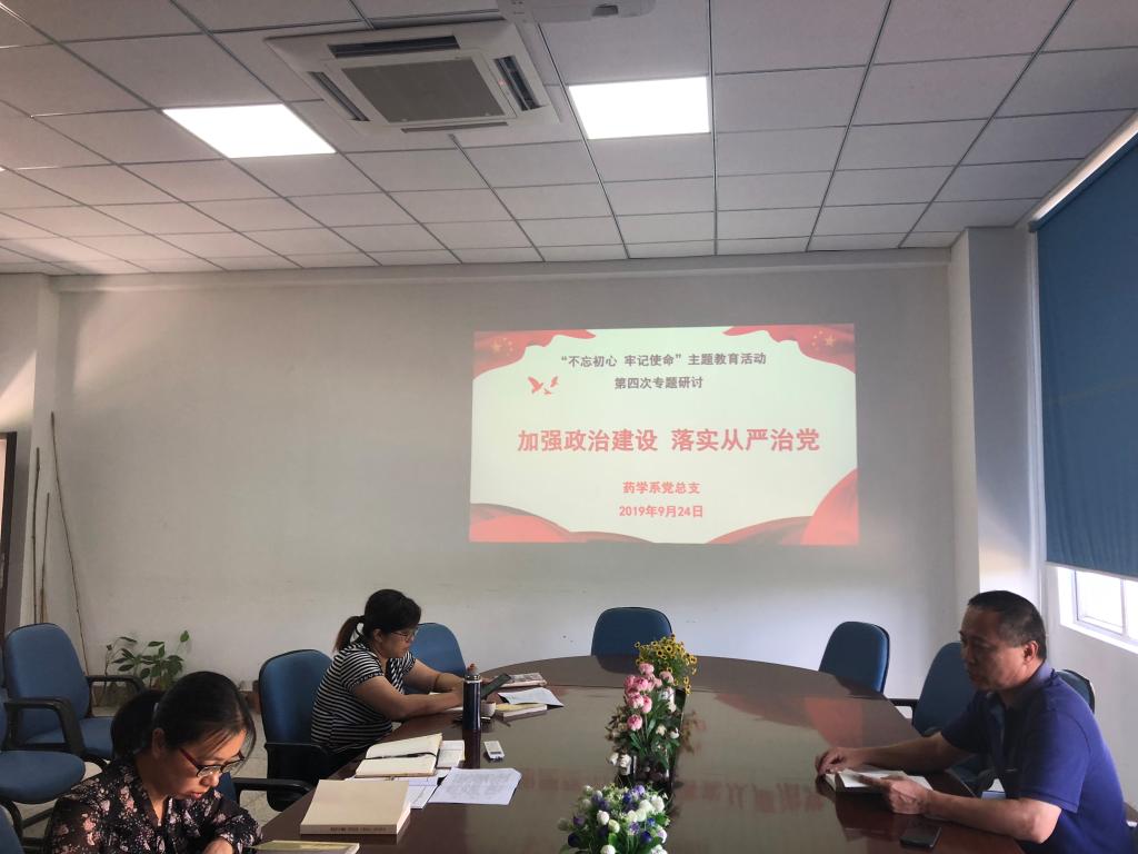 9月24日上午,藥學系黨總支在系部會議室開展主題為“加強政治建設,落實全面從嚴治黨”專題學習研討交流會。藥學系黨總支書記鄭力宏主持會議,黨總支副書記賴文金、系副主任潘雪豐參加了本次研討交流會。