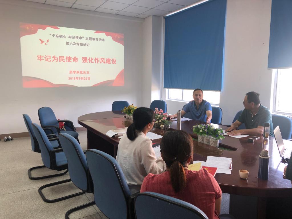9月26日上午,藥學(xué)系黨總支在系部會(huì)議室開展主題為“牢記為民使命,強(qiáng)化作風(fēng)建設(shè)”專題學(xué)習(xí)研討交流會(huì)。藥學(xué)系黨總支書記鄭力宏主持會(huì)議,藥學(xué)系副主任肖?。ㄖ鞒止ぷ鳎?、黨總支副書記賴文金、系副主任潘雪豐參加了本次研討交流會(huì)。