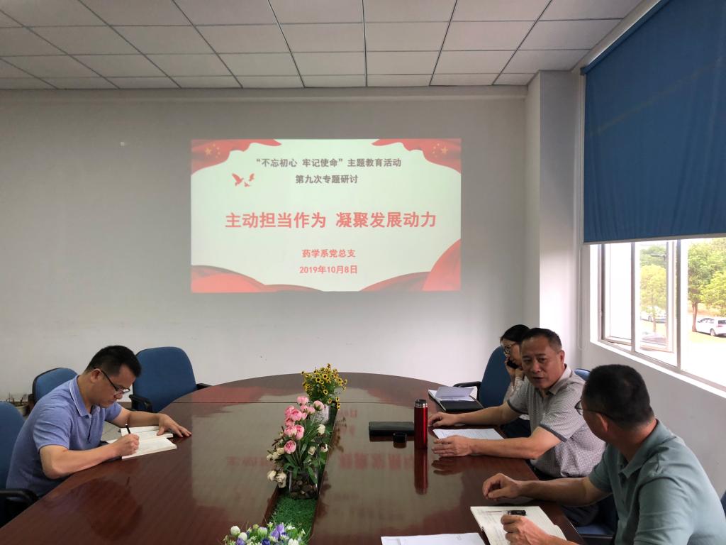 10月8日上午,藥學(xué)系黨總支在系部會(huì)議室開展主題為“主動(dòng)擔(dān)當(dāng)作為,凝聚發(fā)展動(dòng)力”專題學(xué)習(xí)研討交流會(huì)。藥學(xué)系黨總支書記鄭力宏主持會(huì)議,藥學(xué)系副主任肖健(主持工作)、黨總支副書記賴文金、副主任潘雪豐及支部書記參加了本次研討交流會(huì)。