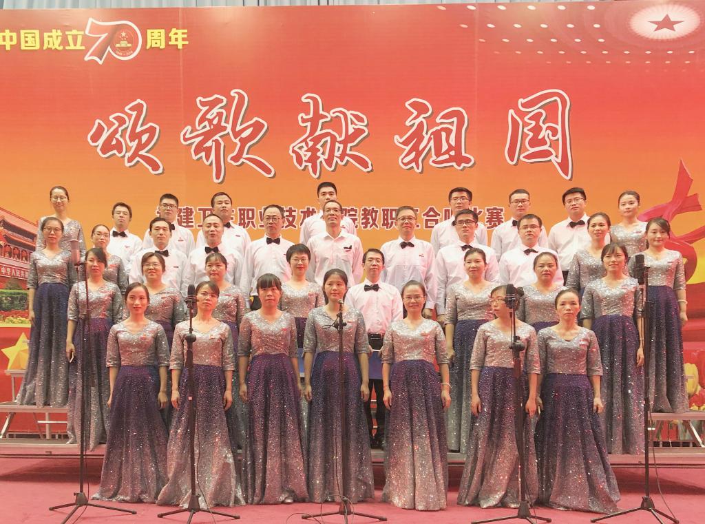 9月26日,藥學(xué)系教職工合唱團(tuán)參加由院工委主辦的慶祝新中國成立70周年“頌歌獻(xiàn)祖國”教職工合唱比賽,用歌聲獻(xiàn)禮中華人民共和國成立70周年華誕,選送的《愛我中華》、《強(qiáng)軍戰(zhàn)歌》兩首曲目榮獲學(xué)院合唱比賽二等獎(jiǎng)。