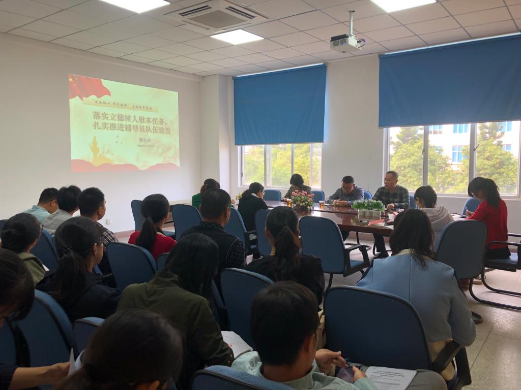 系黨總支副書記賴文金圍繞“落實立德樹人根本任務(wù),扎實推進(jìn)輔導(dǎo)員隊伍建設(shè)”這一主題開展黨課,,結(jié)合前期調(diào)研,論述“充分認(rèn)識輔導(dǎo)員工作的重要意義”、“輔導(dǎo)員隊伍建設(shè)存在的主要問題及原因分析”、“加強和改進(jìn)輔導(dǎo)員隊伍建設(shè)的思路和措施”三方面內(nèi)容,她表示輔導(dǎo)員工作使命光榮、責(zé)任重大,是一項用心靈陪伴心靈的事業(yè),是一項用青春點燃青春、照亮夢想的事業(yè),希望輔導(dǎo)員隊伍能以主題教育為契機,在學(xué)生管理過程中能夠真正做到六要:底子要清,情況要明,困難要幫,矛盾要解,情緒要順(做好問題學(xué)生的心理疏導(dǎo)),環(huán)境要好(為學(xué)生提供寬松的學(xué)習(xí)環(huán)境),能夠不負(fù)重托、不辱使命,腳踏實地、開拓創(chuàng)新,真正落實好立德樹人任務(wù)。