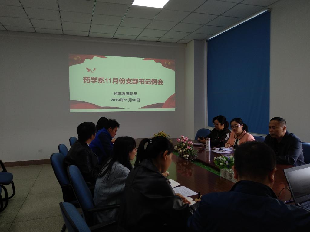 2019年11月20日,藥學(xué)系黨總支在會(huì)議室召開11月份支部書記例會(huì),會(huì)議由藥學(xué)系黨總支書記鄭力宏同志主持。