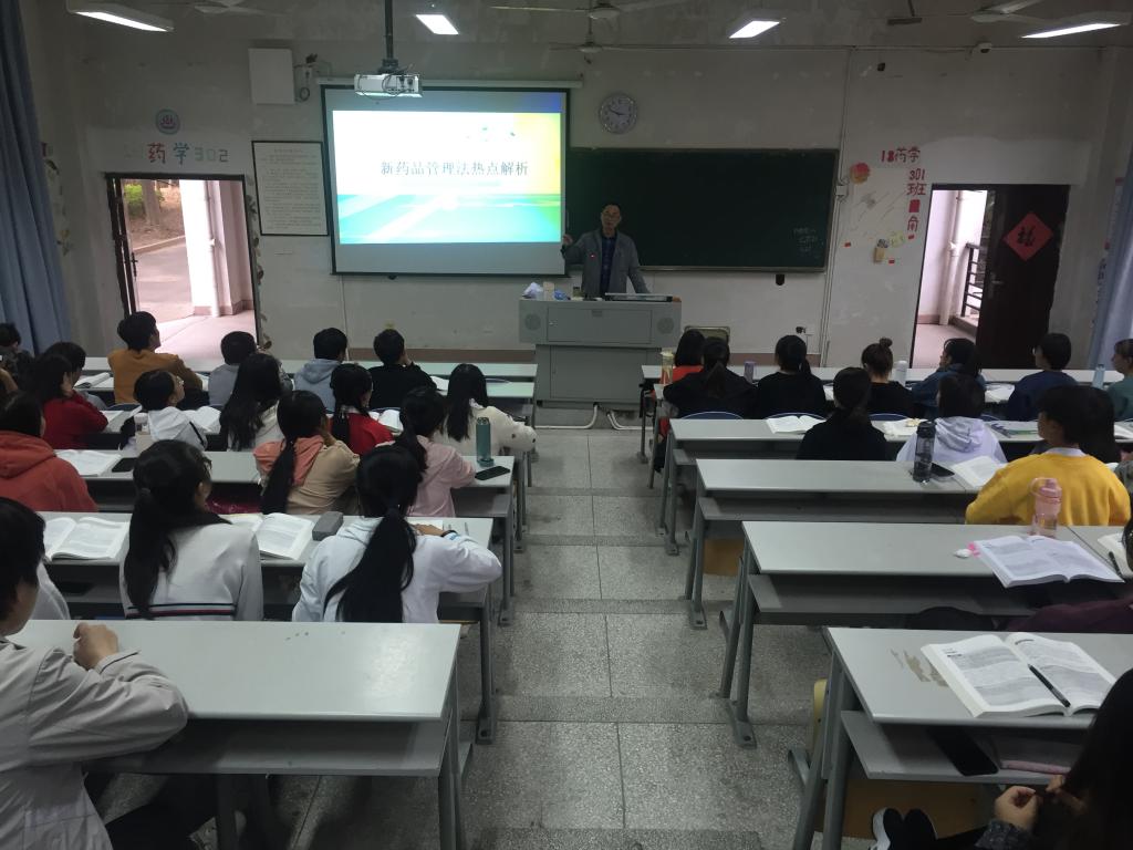 為加深同學(xué)們對(duì)當(dāng)前藥品市場新形勢(shì)的了解,進(jìn)一步掌握健康中國新理念,2019年11月22日,藥學(xué)系肖健副主任在藥一階為18藥學(xué)專業(yè)學(xué)生上主題為《新藥品管理法熱點(diǎn)解析》形勢(shì)與政策課。