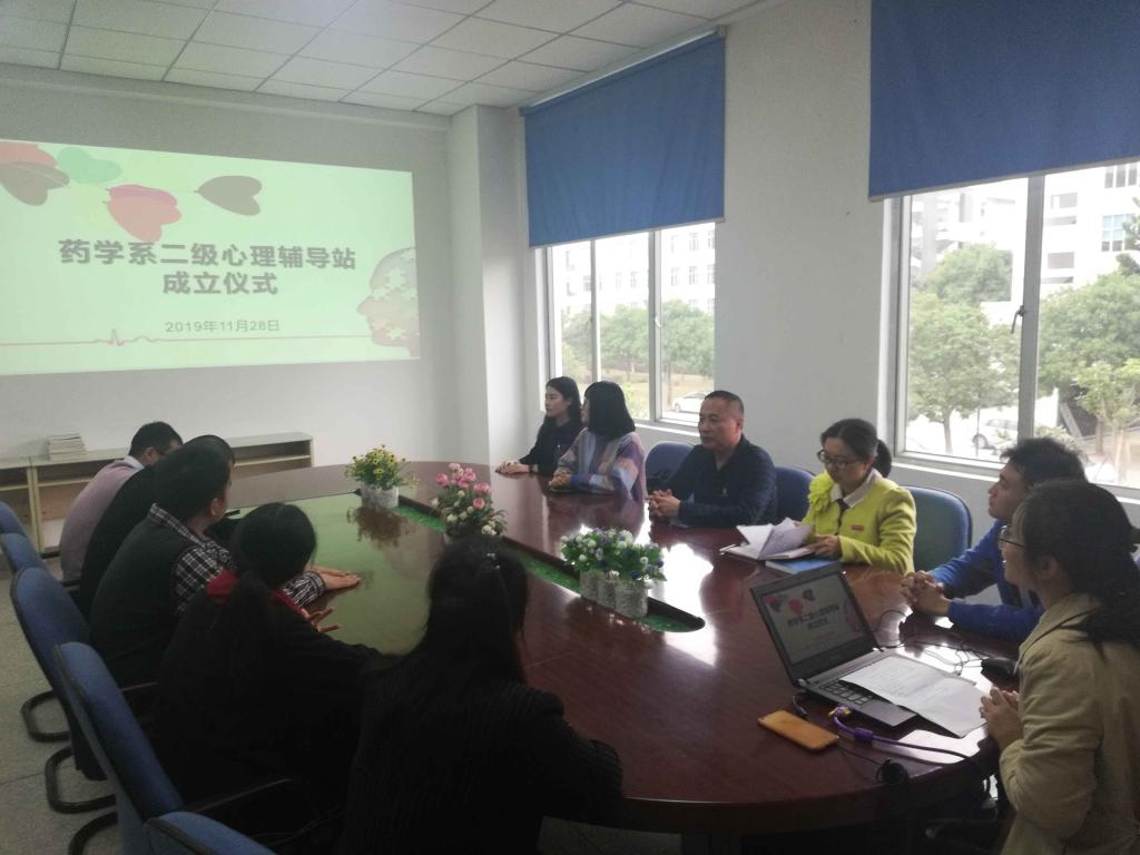 為建立健全學(xué)校心理咨詢輔導(dǎo)與心理危機(jī)干預(yù)四級(jí)網(wǎng)絡(luò)體系,規(guī)范藥學(xué)系大學(xué)生心理健康教育與宣傳工作,2019年11月28日,在藥學(xué)系會(huì)議室舉辦二級(jí)心理輔導(dǎo)站成立儀式。