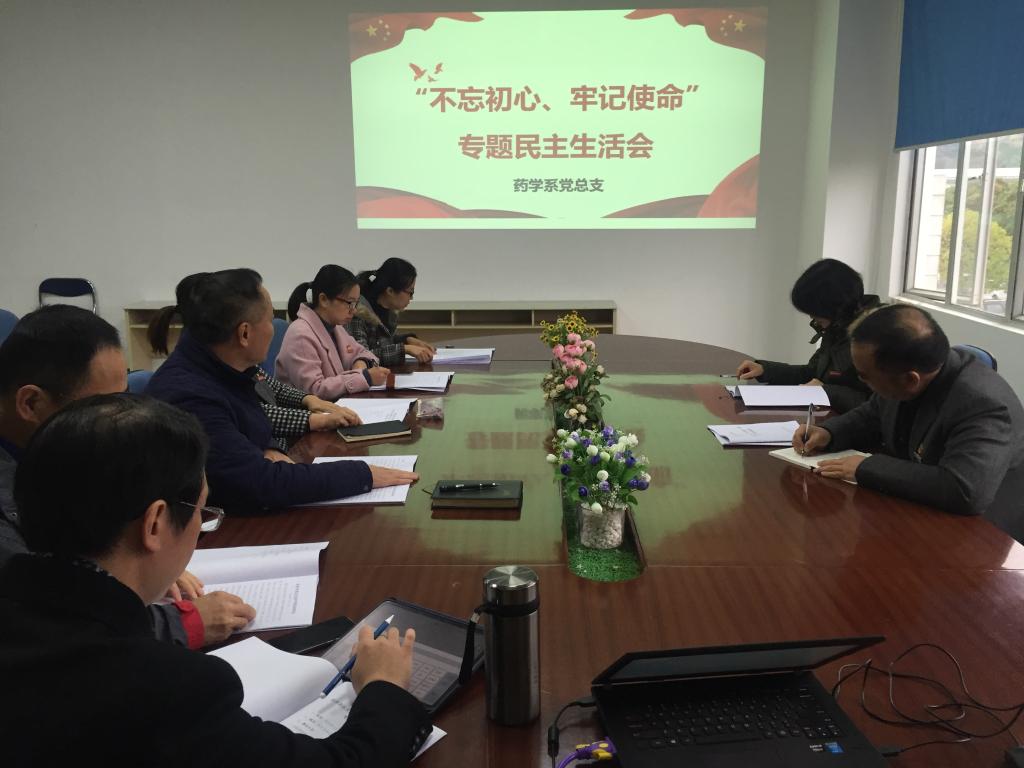 2019年12月5日,藥學系黨總支在系部會議室召開“不忘初心、牢記使命”專題民主生活會,學院第四巡回指導(dǎo)組組長、紀委書記游鋒同志、組員護理系黨總支專職組織員許慧瓊同志蒞臨會場,藥學系黨總支班子成員參會。