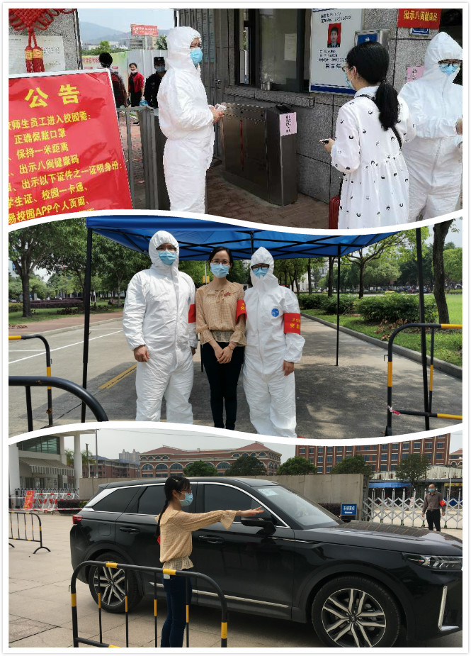 對于我們共產(chǎn)黨員來講,新冠肺炎疫情的防控既是一次危機,也是一次大考。林偉鈴老師作為支部宣傳委員,在完成繁重的教學(xué)任務(wù)及實驗室管理工作之余,還承擔著支部各項宣傳任務(wù),做好支部每一次的學(xué)習(xí)及會議記錄。同時,她還積極加入學(xué)院組織的抗疫安全突擊隊,參與學(xué)生返校演練,做好學(xué)生返校日的車輛引導(dǎo)工作。朱宏陽老師結(jié)合時疫調(diào)整授課重點,向?qū)W生宣講病毒知識,引導(dǎo)學(xué)生在家做好防護工作;在此基礎(chǔ)上,積極組建師生創(chuàng)新創(chuàng)業(yè)團隊,指導(dǎo)學(xué)生申報福建省挑戰(zhàn)杯創(chuàng)新創(chuàng)業(yè)大賽和中美創(chuàng)客比賽。林婷婷老師作為新進教學(xué)人員在承擔教學(xué)工作之余還承擔起落實系部教職工每日的健康打卡任務(wù)。