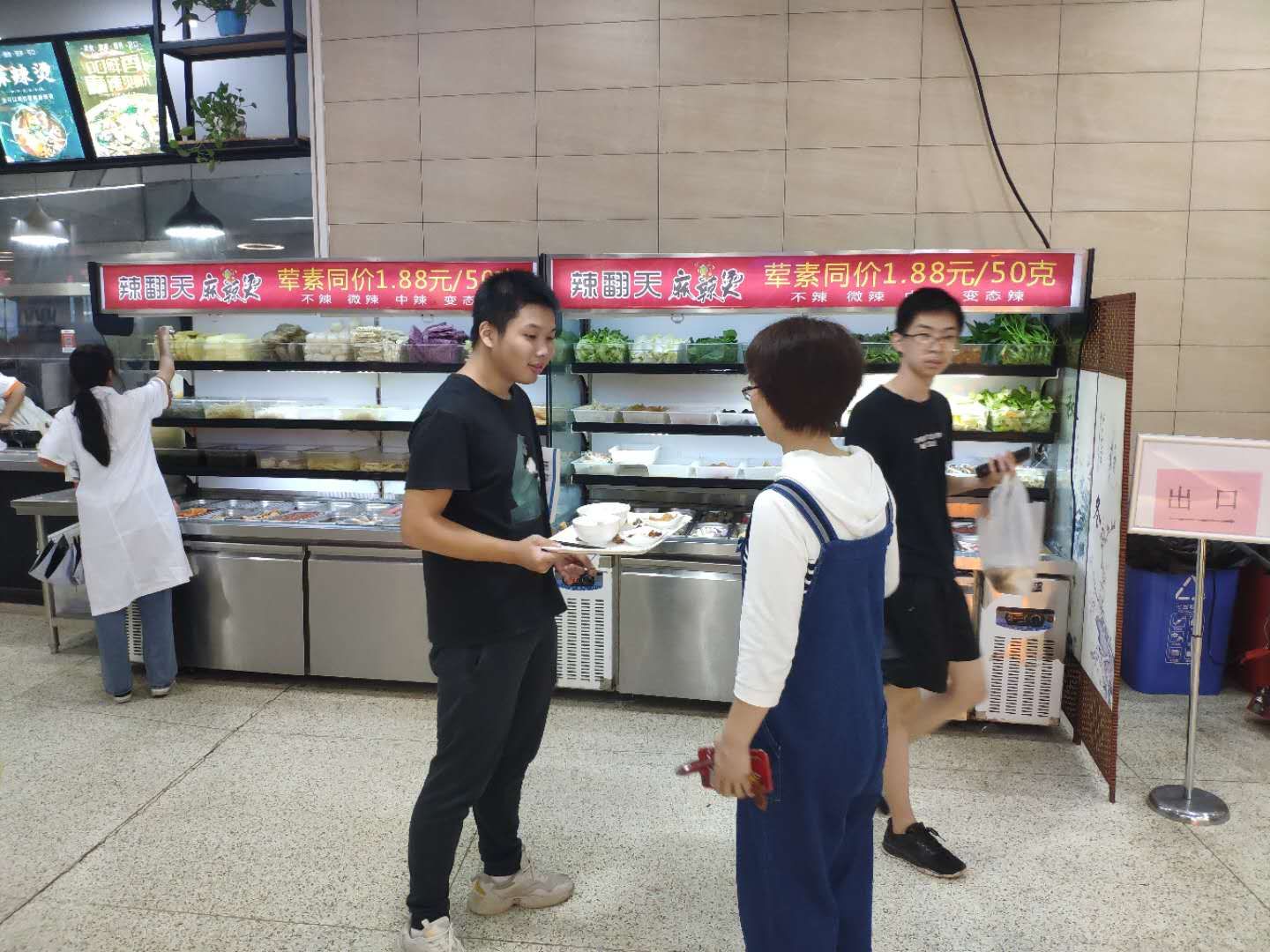 第一黨支部的黨員們在明湖餐廳引導師生有序進餐、適量點餐、適量用餐,對點餐量明顯過多或有浪費行為的同學進行了提醒。