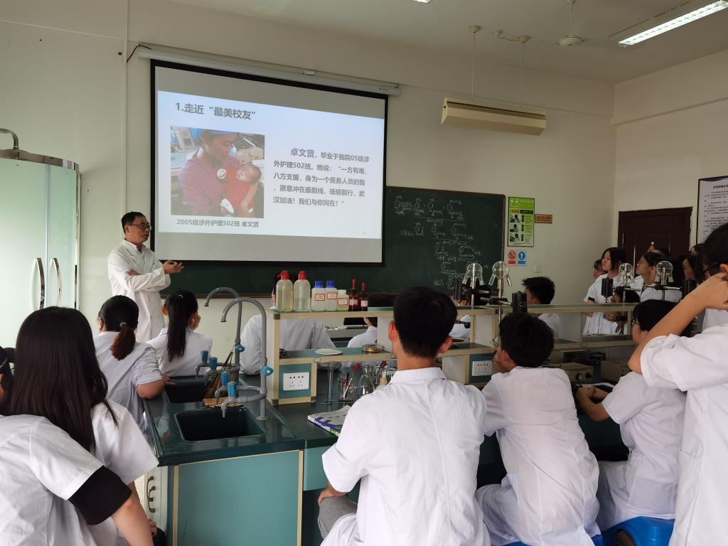 課上,肖健副主任圍繞學(xué)院校友在戰(zhàn)“疫”過(guò)程中涌現(xiàn)出的感人事跡、學(xué)院全體同仁在防“疫”關(guān)頭表現(xiàn)出的有效落實(shí)兩方面展開(kāi)闡述。他強(qiáng)調(diào)新冠疫情爆發(fā)以來(lái),我院許許多多校友奮戰(zhàn)在抗擊疫情的第一線,他們臨危受命,放棄春節(jié)休假,與時(shí)間賽跑,與疫情抗?fàn)帲詫?shí)際行動(dòng)踐行著“業(yè)精德誠(chéng)”的校訓(xùn)精神,踐行著醫(yī)生誓言。他表示,希望同學(xué)們努力學(xué)習(xí),在學(xué)好專業(yè)知識(shí)的基礎(chǔ)上,不斷強(qiáng)化技能,今后為醫(yī)學(xué)事業(yè)的發(fā)展貢獻(xiàn)個(gè)人力量。