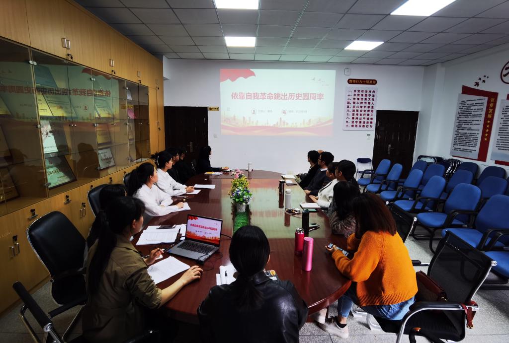 2023年3月16日,藥學(xué)院副院長黃艷在藥學(xué)院會(huì)議室講授了以《依靠自我革命跳出歷史周期率》為題的黨課,第一黨支部全體黨員參與。