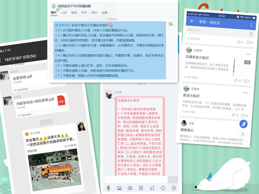 12月2日是第七個“全國交通安全日”,為普及交通安全意識,強化學(xué)生交通安全意識,提升學(xué)生遵守交通法規(guī)的自覺性,藥學(xué)系組織各班級開展“細(xì)節(jié)關(guān)乎生命,安全文明出行”主題教育活動。 班會上,各班輔導(dǎo)員結(jié)合近期學(xué)院學(xué)生返校途中發(fā)生的交通安全事故以及一些生命安全相關(guān)的真實案例,對學(xué)生進(jìn)行安全教育,帶領(lǐng)學(xué)生學(xué)習(xí)交通安全知識,強調(diào)做好安全文明出行的每個細(xì)節(jié)。此外,還通過班級QQ群、微信群、易班平臺等發(fā)送交通安全小知識。 通過本次主題教育活動,讓學(xué)生們掌握了更多的交通安全知識,增強了交通安全意識,提升了交通安全的自我保護(hù)能力,大家紛紛表示,會將學(xué)到的安全知識用到實際行動中,養(yǎng)成良好的交通習(xí)慣, 規(guī)范每一個交通行為,從他律走向自律,做文明交通的參與者。
