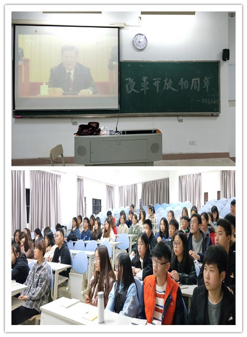 |       12月18日上午,慶祝改革開放40周年大會在人民大會堂隆重召開。當天晚上,藥學系組織兩委會學生及各班正、副團支部集中觀看大會盛況,學習習近平總書記的重要講話精神。改革開放鑄就的偉大改革開放精神,極大豐富了民族精神內涵,成為當代中國人民最鮮明的精神標識。40年的春華秋實,實現了3次偉大飛躍,形成了3大里程碑。習近平總書記用10個“始終”回顧了這40年的改革歷程給了我們全國人民9大啟示、9條寶貴經驗。同學們認真學習講話精神,體會改革開放40年的輝煌成就,大家表示作為當代大學生,充滿了自豪感,展望未來,斗志昂揚,將緊跟新時代的腳步,繼往開來,敢于擔當,感恩前行,與時代共同揮寫更輝煌的歷史新篇章!