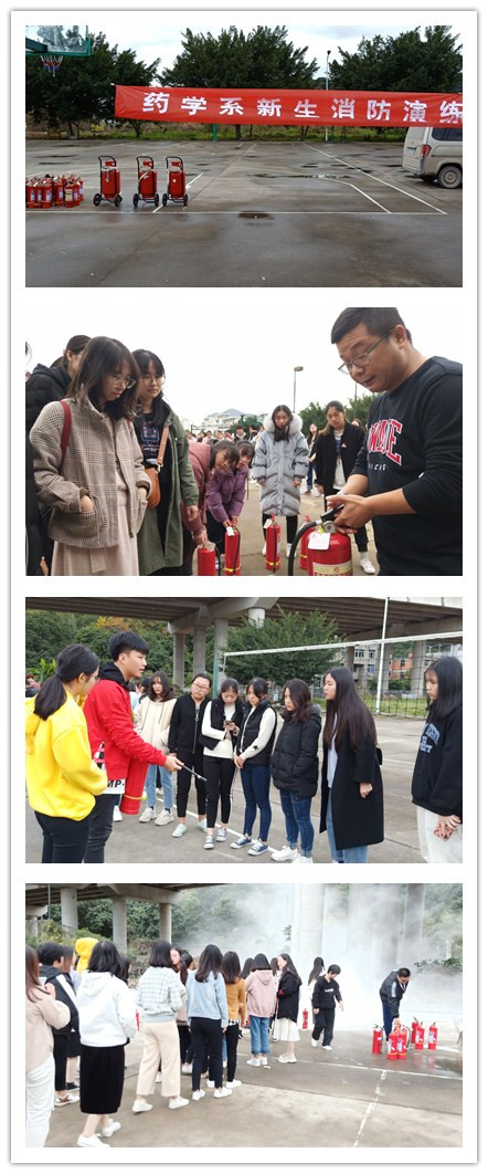 為增強(qiáng)學(xué)生的消防安全責(zé)任意識,提高消防安全防范技能,12月27日下午1點,由藥學(xué)系保衛(wèi)部組織的火盆演練在籃球場如火如荼開展。出席本次演練的有藥學(xué)系黨總支副書記陳潔、團(tuán)總支副書記尹德愛、輔導(dǎo)員及2018級全體學(xué)生。 演練開始前,保衛(wèi)處老師為大家詳細(xì)講解了關(guān)于滅火器使用的基本常識及滅火的基本要領(lǐng)和注意事項,同時指導(dǎo)同學(xué)們?nèi)绾握_使用滅火器。認(rèn)真聽完老師的講解后,2018級的同學(xué)們依次上前依次學(xué)習(xí)了如何正確使用滅火器撲火。面對眼前熊熊燃燒的火堆,同學(xué)們按照滅火的步驟和方法,手提干粉滅火器,快速拔掉保險銷對準(zhǔn)火源根部按下把手向火源噴去。整個動作一氣呵成火焰迅速被撲滅。 通過本次的演練使學(xué)生們基本了解了火災(zāi)發(fā)生時的應(yīng)對措施,大大增強(qiáng)了大家的安全意識與自護(hù)自救技能。
