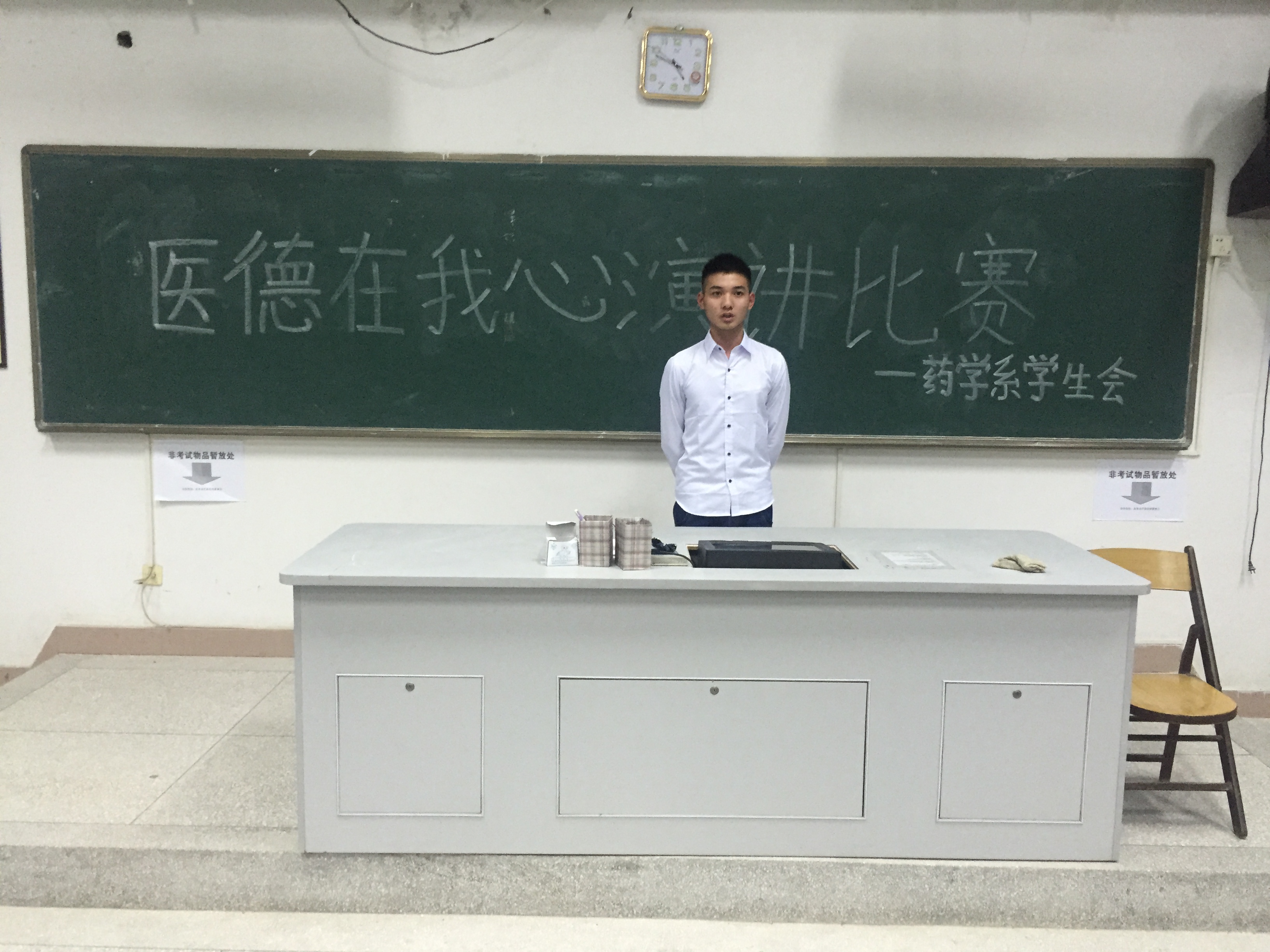 藥學系于5月3日在藥二階舉行了一場“醫(yī)德在我心”的演講比賽,系兩委會新老成員應(yīng)邀出席并擔任比賽評委。